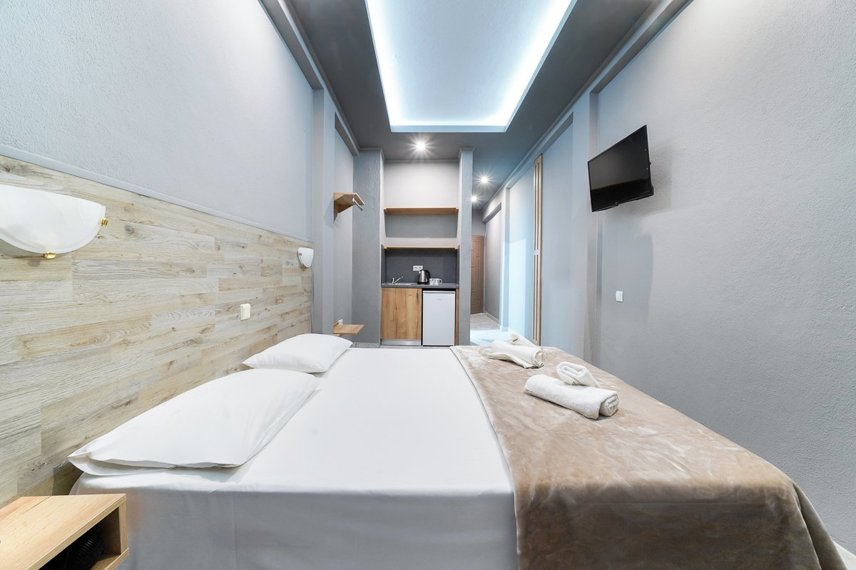 Our double room has one double bed and has access to a private balcony. It is equipped with all the necessary amenities in order for you to enjoy your stay at our hotel.